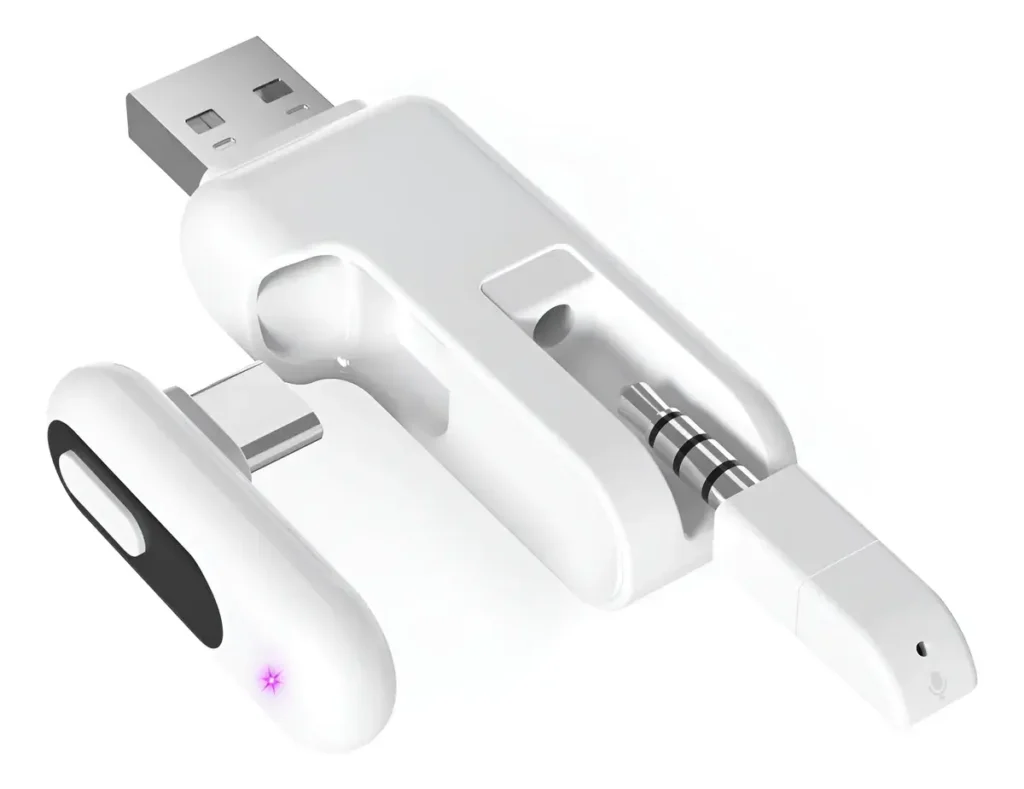 O YOCOWOCO Bluetooth Audio Adapter é um transmissor de áudio sem fio, não um receptor. Ele envia o áudio do console ou computador diretamente para seus fones Bluetooth, ignorando as restrições do sistema PlayStation.