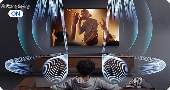 Ao invés de desativar os alto-falantes da TV ao conectar uma soundbar, o Q-Symphony combina os dois para gerar um som ainda mais rico e envolvente.